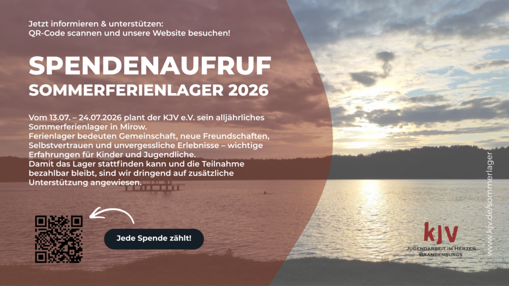 KJV e.V. ist eine gemeinnützige Organisation, die sich der Förderung der Chancengleichheit und der Verbesserung der Lebensqualität von Kindern in Zeuthen, Eichwalde, Wildau und Schulzendorf (ZEWS) widmet. Durch verschiedene Aktivitäten und Projekte wie das Sommercamp 2026 bieten wir Kindern aus weniger privilegierten Familien in ZEWS die Möglichkeit, neue Erfahrungen zu sammeln und wertvolle Erinnerungen zu schaffen.