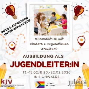 Wir möchten Ehrenamtliche ab 16 Jahren für die Arbeit mit Kinder- und Jugendgruppen fit machen und treffen uns dazu an zwei Wochenenden im Februar (13.-15.02. und 30.-22.02.) voraussichtlich in den Räumen des Jugendclubs Eichwalde (August-Bebel-Allee 34) zu einer Jugendleiter:innen-Ausbildung.